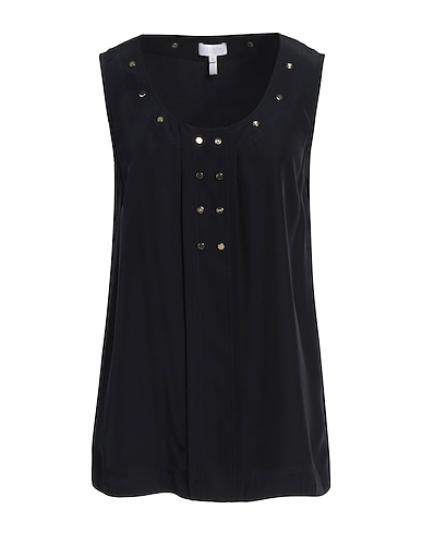 top, satin, solid color with appliqués, embellished, scoop neckline, sleeveless, machine wash or dry clean, do not bleach, do not tumble dry