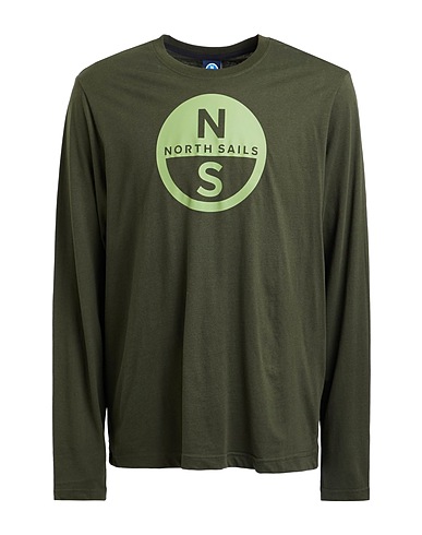 logo-print t-shirt, jersey, solid color with print, no appliqués, crewneck, long sleeves, machine wash, do not bleach, do not tumble dry