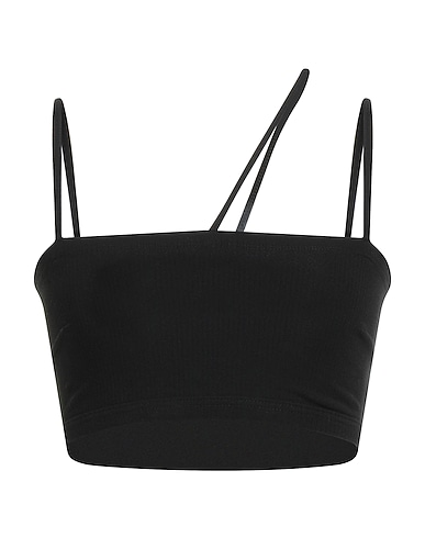 crop top, knitted, lightweight knit, solid color, no appliqués, deep neckline, sleeveless, stretch, machine wash, do not bleach, do not tumble dry