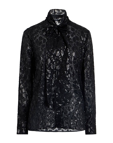 bow shirt, jacquard, metallic, solid color, no appliqués, long sleeves, concealed button fastenings, dry clean, do not bleach, do not tumble dry