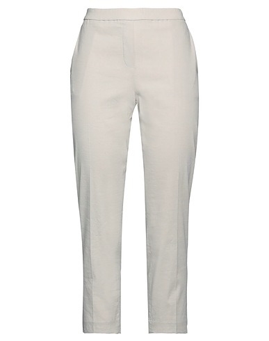 tapered pants, woven, stretchy fabric, solid color, no appliqués, mid rise, elasticized waist, regular fit, slit pockets, dry clean, do not bleach, do not tumble dry, cropped