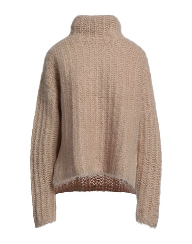 knitted, medium-weight knit, no appliqués, solid color, turtleneck, long sleeves, without pockets, side slit hemline