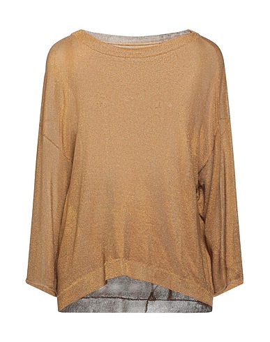 knitted, lamé, lightweight knit, no appliqués, solid color, crew neck, 3/4 length sleeves, no pockets