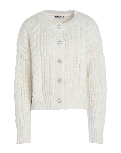 knitted, cable stitch, medium-weight knit, no appliqués, solid color, crewneck, long sleeves, ribbed cuffs, button closing, no pockets