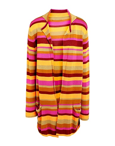 knitted, lightweight knit, no appliqués, striped, deep neckline, long sleeves, multipockets, pocket with flap
