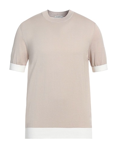 knitted, lightweight knit, two-tone, no appliqués, crewneck, short sleeves, hand wash or dry clean, do not bleach, do not tumble dry
