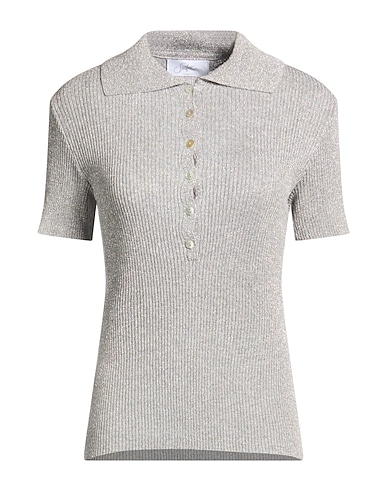 ribbed-knit, lightweight knit, metallic, no appliqués, solid color, buttoned neckline, short sleeves, machine wash or dry clean, do not bleach, do not tumble dry