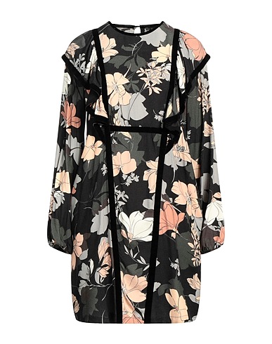 flannel, velvet, ruffles, floral design, crewneck, long sleeves, unlined, multipockets, trapeze style