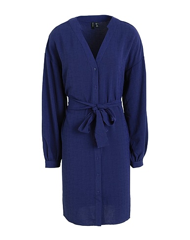 flared dress, woven, belt, solid color, v-neck, long sleeves, buttoned cuffs, unlined, button fastenings