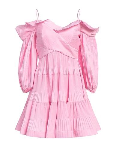 pleated dress, woven, solid color, pleated, off-the-shoulder, long sleeves, puffed sleeves, partially lined, zipper fastening, machine wash or dry clean, do not bleach, do not tumble dry