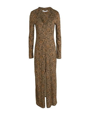jersey, no appliqués, floral-print, polo collar, long sleeves, front slit, hand wash, do not bleach, do not tumble dry, do not iron, flared dress