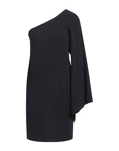 bodycon dress, crepe, solid color, no appliqués, deep neckline, one-shoulder, unlined, zipper fastening, stretch, machine wash or dry clean, do not bleach, do not tumble dry