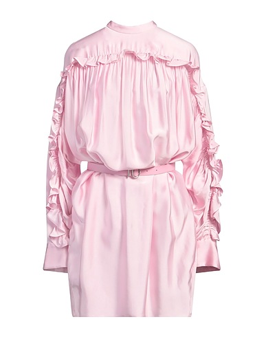 flared dress, satin, solid color, ruffles, belt, crewneck, long sleeves, buttoned cuffs, unlined, multipockets, contains non-textile parts of animal origin, dry clean, do not bleach, do not tumble dry, this brand runs large