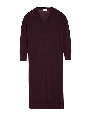 dress, wool, lightweight knit, solid color, no appliqués, v-neck, long sleeves, dry clean, do not bleach, do not tumble dry