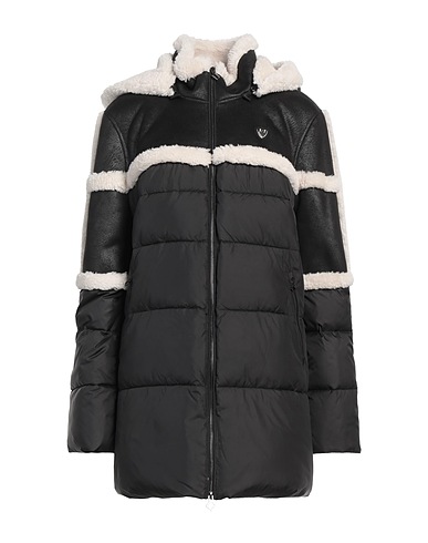 padded coat, shell, plush fabric, two-tone, brand logo, detachable hood, single-breasted , long sleeves, synthetic filling, zipper fastening, zipped pockets, dry clean, do not bleach, do not tumble dry, do not iron