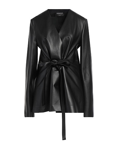 belted jacket, leather, solid color, belt, deep neckline, long sleeves, unlined, contains non-textile parts of animal origin, dry clean, do not bleach, do not tumble dry