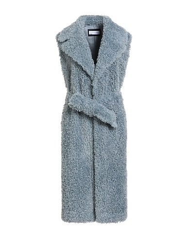 teddy coat, sherpa, belt, solid color, lapel collar, sleeveless, unlined, tie fastening, slit pockets, rear slit, dry clean, do not bleach, do not tumble dry