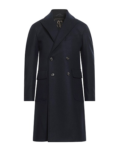 double-breasted coat, flannel, no appliqués, solid color, lapel collar, long sleeves, buttoned cuffs, fully lined, button fastenings, flap pockets, one chest pocket, dry clean, do not bleach, do not tumble dry