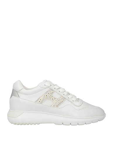 low-top sneakers, leather, solid color with appliqués, crystals, brand logo, leather lining, lace-up, round toe, rubber cleated sole, contains non-textile parts of animal origin
