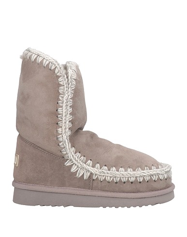 padded ankle boots, suede, solid color with appliqués, brand logo, lined in shearling, round toe, flat, rubber sole, contains non-textile parts of animal origin