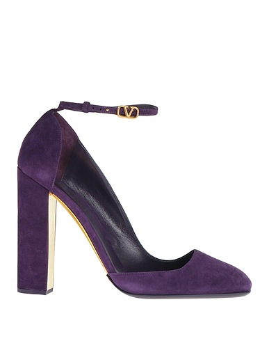pumps, suede, solid color, brand logo, leather lining, buckle-fastening ankle strap, square toe, square heel, covered heel, leather sole, contains non-textile parts of animal origin