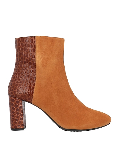 ankle boots, suede, textured-leather, two-tone, no appliqués, fully lined, zipper fastening, round toe, square heel, covered heel, rubber sole, contains non-textile parts of animal origin