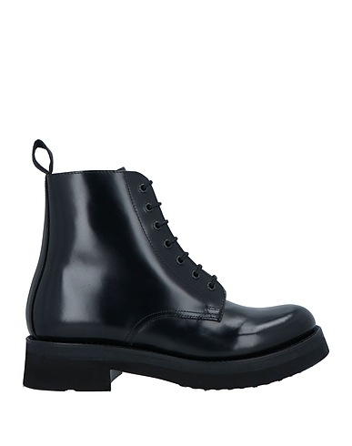 lace-up ankle boots, leather, polished leather, no appliqués, solid color, leather lining, lace-up, round toe, square heel, rubber cleated sole, contains non-textile parts of animal origin