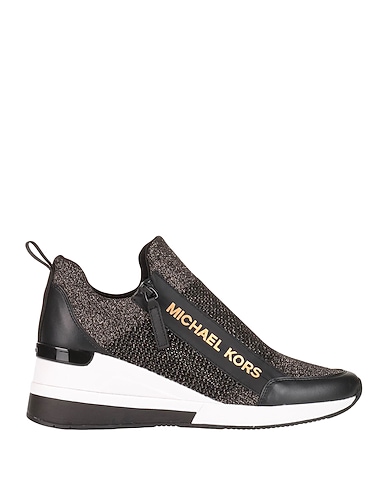 low-top sneakers, leather, knitted, lamé, two-tone, brand logo, zipper fastening, round toe, wedge, rubber sole, fabric inner, contains non-textile parts of animal origin