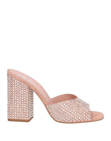 slide sandals, suede, solid color, crystals, leather lining, round toe, square heel, leather sole, contains non-textile parts of animal origin
