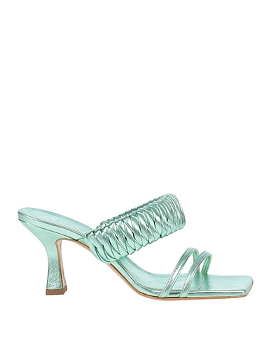 leather, laminated effect, no appliqués, solid color, leather backing, square toeline, spool heel, leather sole, contains non-textile parts of animal origin, sandals