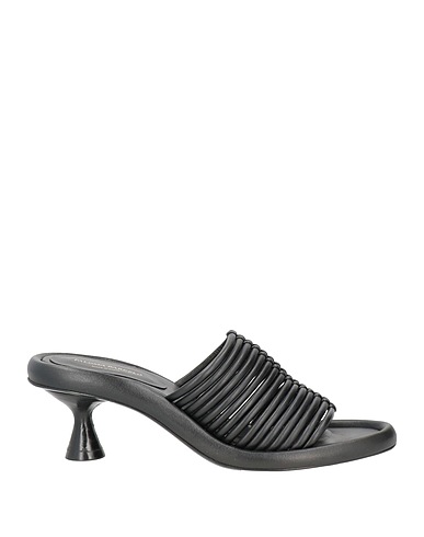 leather, no appliqués, solid color, leather lining, round toeline, geometric heel, leather/rubber sole, contains non-textile parts of animal origin, slide sandals
