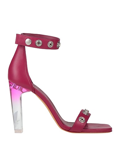 leather, metal applications, two-tone, leather lining, snap fastenings, square toe, square heel, acrylic heel, leather/rubber sole, contains non-textile parts of animal origin, ankle strap sandals