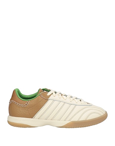 low-top sneakers, leather, two-tone, brand logo, fabric inner, lace-up, round toe, rubber cleated sole, contains non-textile parts of animal origin