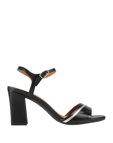 ankle strap sandals, leather, solid color with appliqués, embellished, leather lining, buckle-fastening ankle strap, round toe, square heel, covered heel, rubber sole, contains non-textile parts of animal origin