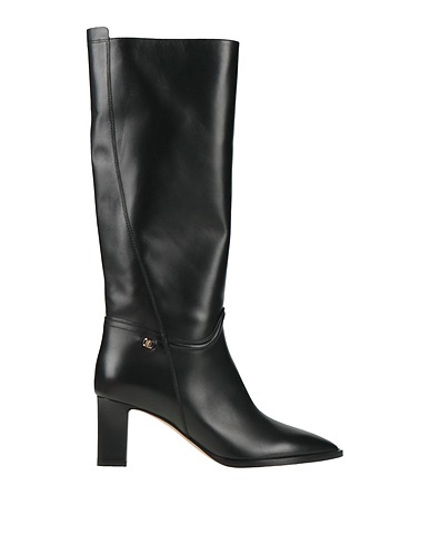 boots, leather, solid color, brand logo, leather lining, zipper fastening, pointed toe, square heel, leather/rubber sole, contains non-textile parts of animal origin