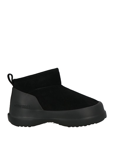 padded ankle boots, suede, solid color, brand logo, plush fabric inner, round toe, square heel, rubber cleated sole, contains non-textile parts of animal origin