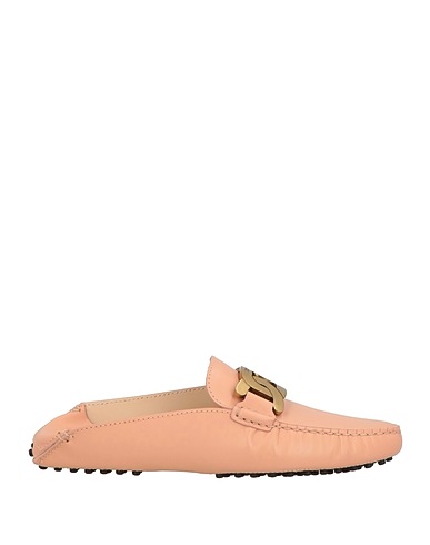 mules, leather, solid color with appliqués, brand logo, leather lining, round toe, flat, pebbled sole, contains non-textile parts of animal origin