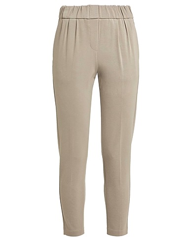 tapered pants, jersey, gathered, solid color, high waisted, elasticized waist, regular fit, multipockets, stretch, hand wash or dry clean, do not bleach, do not tumble dry