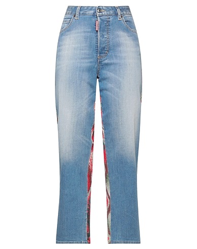denim, faded, brand logo, leather applications, solid color, medium wash, high waisted, belt loops, tapered leg, regular fit, button closing, five pockets, stretch, contains non-textile parts of animal origin, mom-cut model