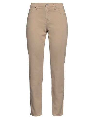 denim, brand logo, solid color, colored wash, mid rise, belt loops, tapered leg, zipper closure, 1 button, multipockets, skinny model