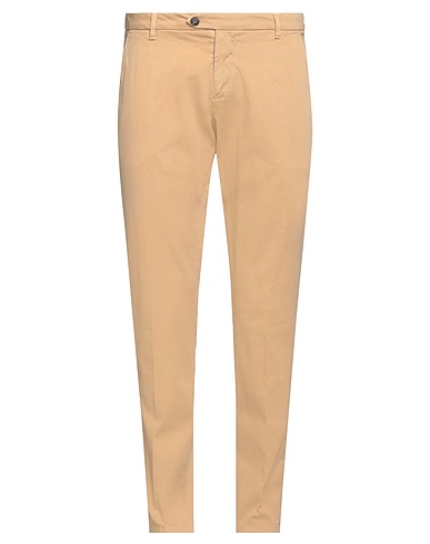gabardine, brand logo, embroidered detailing, solid color, mid rise, tapered leg, slim-leg pants, zipper closure, button closing, multipockets, stretch, chinos