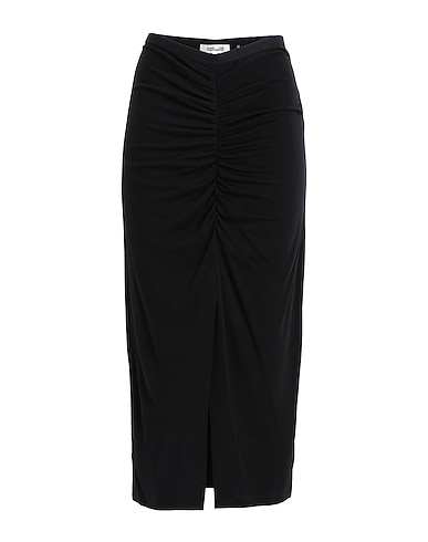 pencil skirt, jersey, solid color, gathered, elasticized waist, front slit, dry clean, do not bleach, do not tumble dry