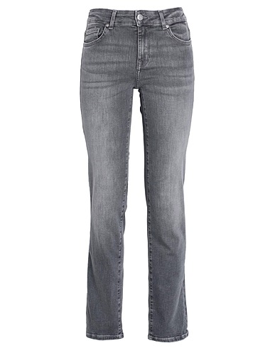 denim, faded, brand logo, solid color, colored wash, mid rise, belt loops, straight leg, slim-leg pants, 1 button, zipper closure, five pockets, stretch, straight-leg model