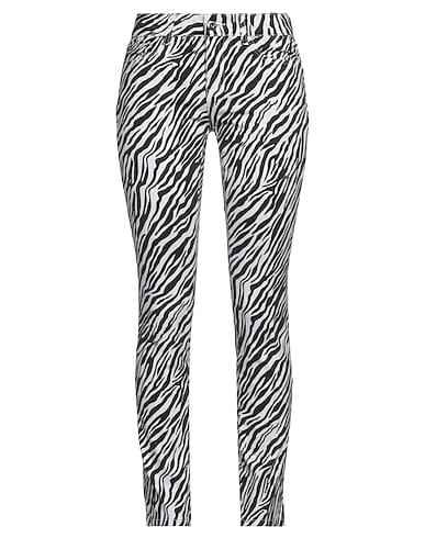 gabardine, brand logo, metal applications, zebra-print, two-tone, mid rise, tapered leg, regular fit, zipper closure, 1 button, five pockets, stretch, 5 pocket