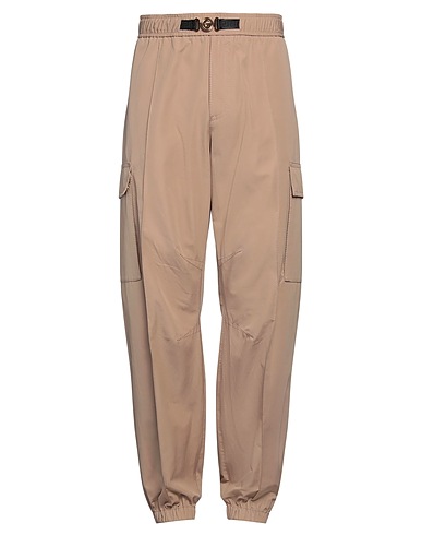 woven, brand logo, solid color, high waisted, drawstring waist, relaxed fit, zipper fastening, elasticated hem, multipockets, cargo pants, this brand runs large