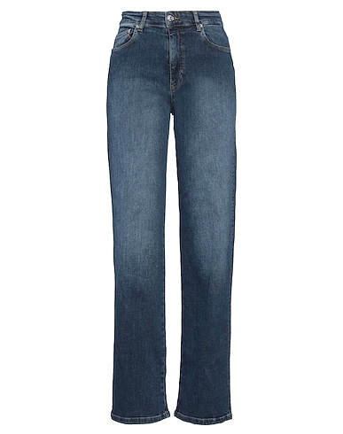 denim, faded, brand logo, solid color, medium wash, high waisted, belt loops, regular fit, zipper fastening, 1 button, multipockets, hand wash or dry clean, do not bleach, do not tumble dry, contains non-textile parts of animal origin, straight-leg jeans