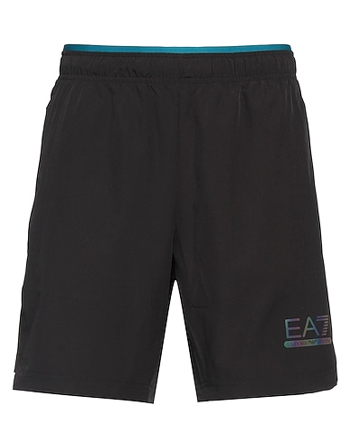 athletic shorts, synthetic jersey, brand logo, two-tone, mid rise, elasticized waist, relaxed fit, drawstring fastening, zipped pockets, stretch, machine wash, do not bleach, do not tumble dry