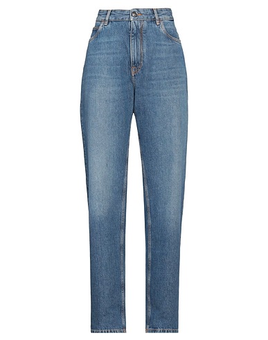 straight-leg jeans, denim, faded, leather trims, solid color, medium wash, high waisted, belt loops, regular fit, zipper fastening, 1 button, multipockets, machine wash, do not bleach, do not tumble dry, contains non-textile parts of animal origin