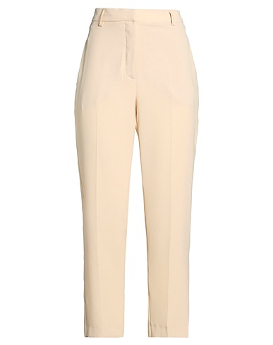 tapered pants, crepe, solid color, brand logo, high waisted, belt loops, regular fit, zipper fastening, hook fastenings, slit pockets, decorative pocket, machine wash or dry clean, do not bleach, do not tumble dry