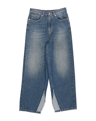 denim, faded, solid color, brand logo, dark wash, zipper fastening, button fastenings, side slit hemline, five pockets, machine wash, do not bleach, do not tumble dry, do not iron